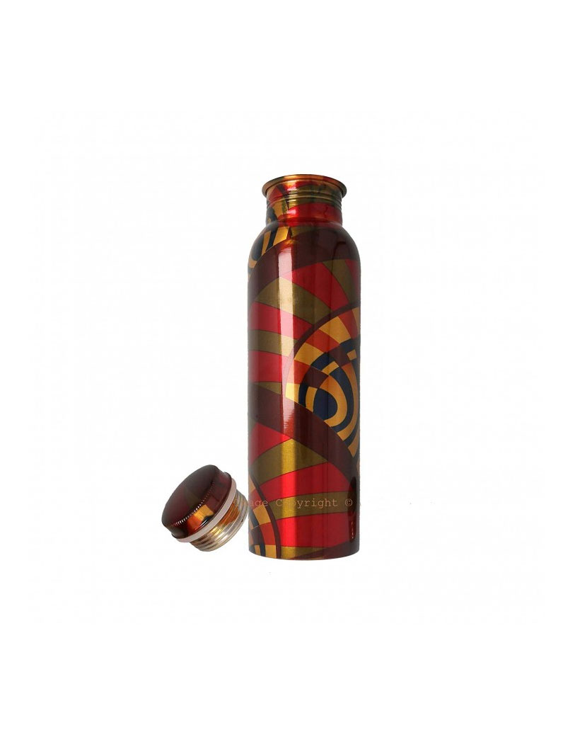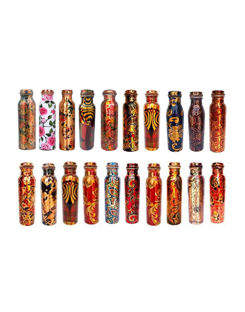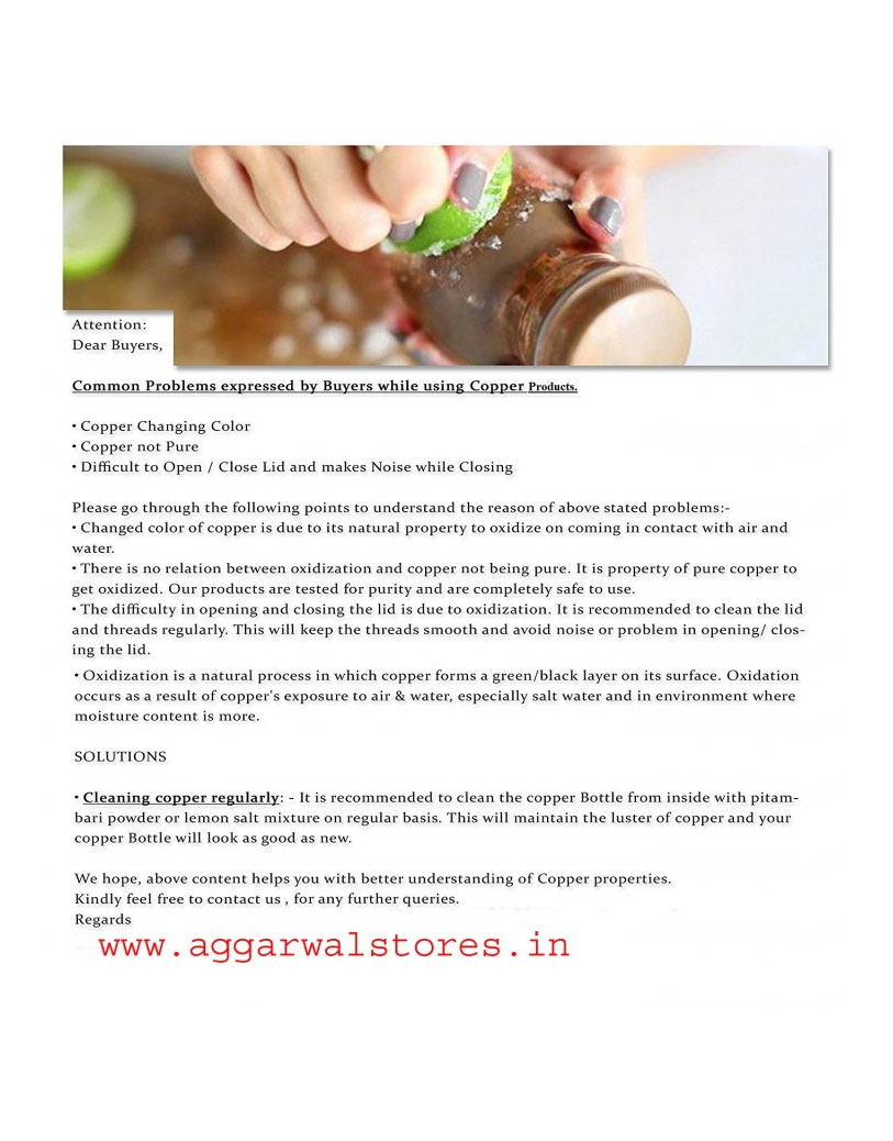 - Material: 100% pure copper inside & outside but outside lacquer coated bottle, weight: 280-300g, height: 10.5-inch, width/diameter: 2.75-inch , capacity: 900ml.